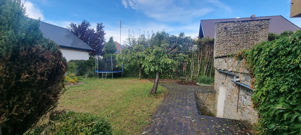 Dom z lat 80-tych o powierzchni użytkowej ok. 160 m2, piętrowy (dodatkowo z użytkowym poddaszem ok. 30 m2), podpiwniczony, posadowiony na ładnie zagospodarowanej, prostokątnej działce o powierzchni ponad 500 m2. Przedmiotowa działka ma regularny kształt, jest funkcjonalna i płaska.