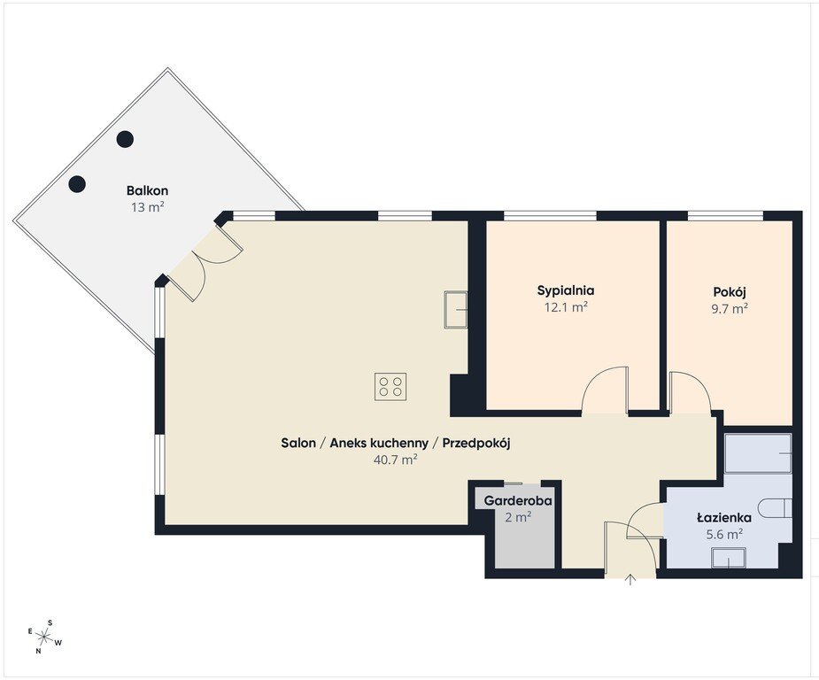 - sypialnia o powierzchni 12,13 mkw.