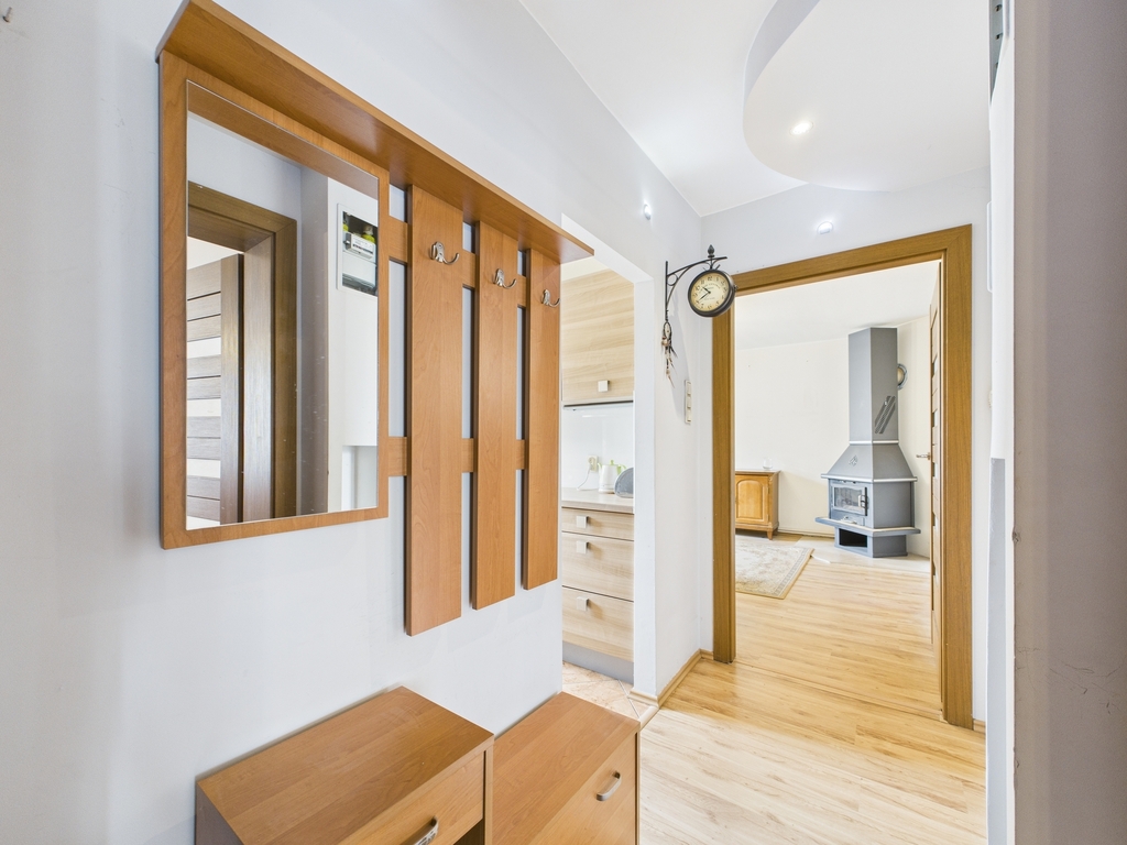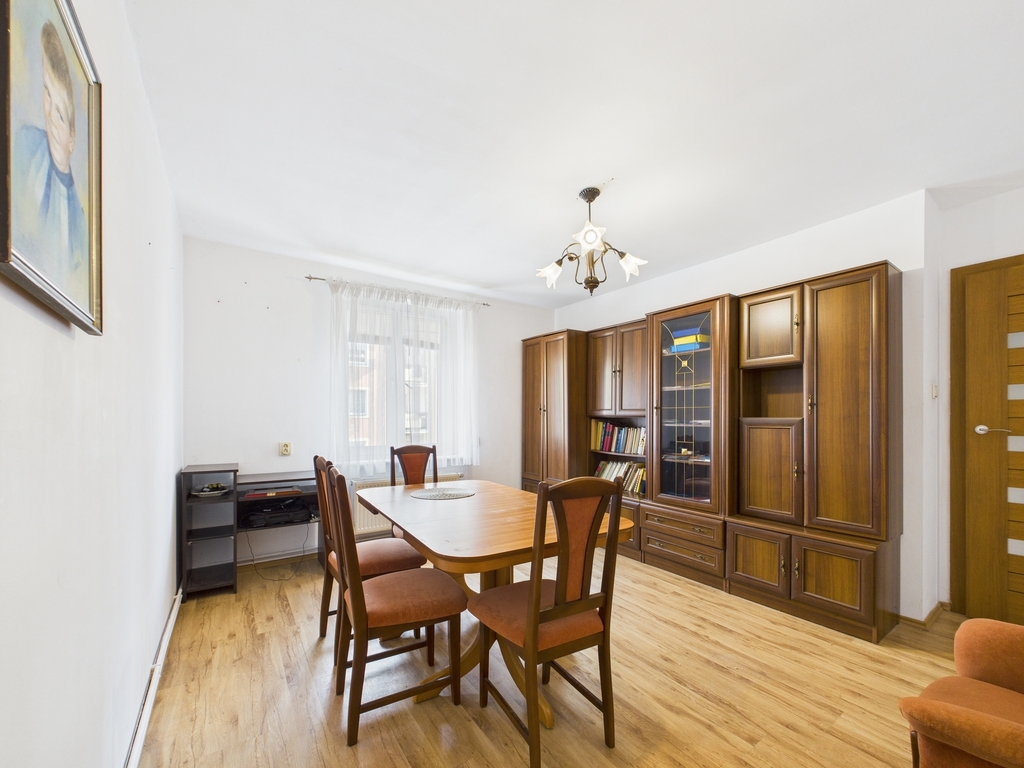 Mieszkanie wymaga odświeżenia, ale nie generalnego remontu. Mamy tu kuchnię w zabudowie,panele na podłogach, trzeba odmalować ściany.