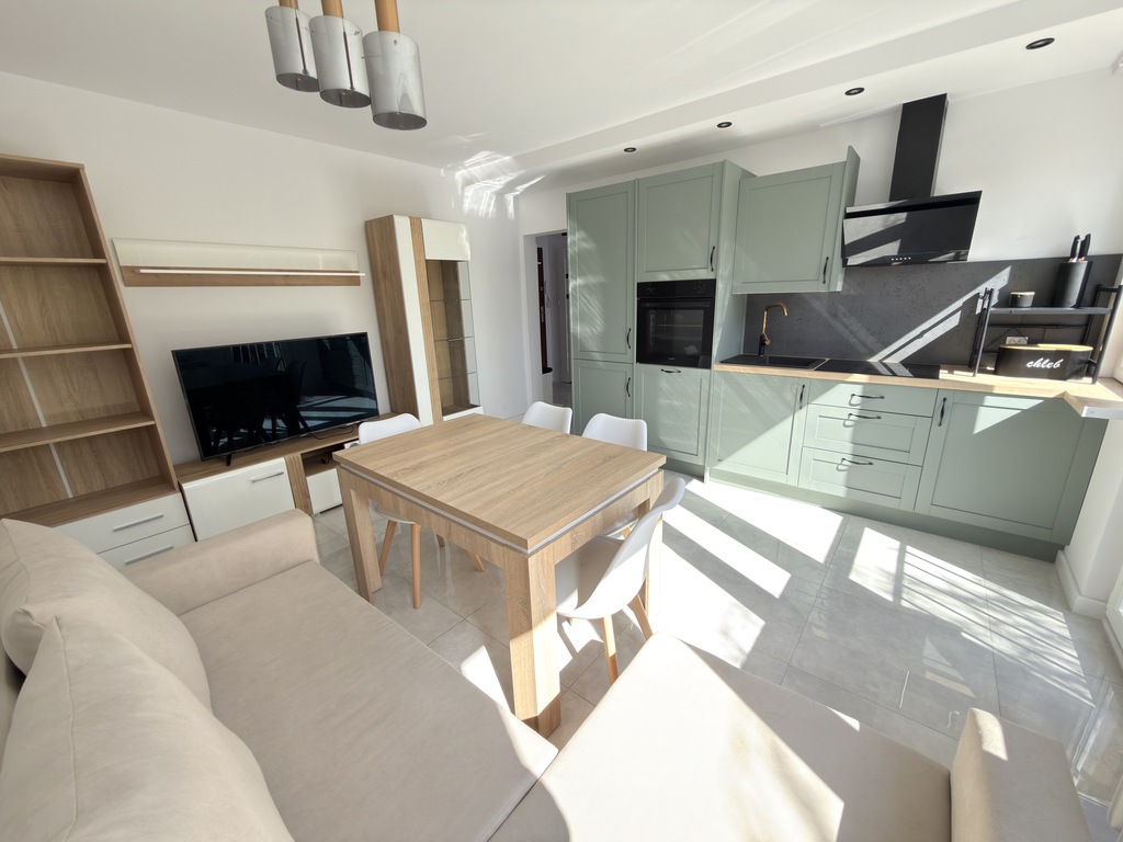 • Kuchnia  umeblowana i wyposażona ( zmywarka, piekarnik, płyta indukcyjna, lodówka - wszystko w  zabudowie  )
