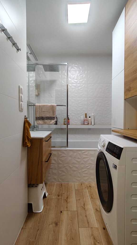 Łazienka z wanną oraz osobna toaleta z umywalką - w nowej glazurze i terakocie.
