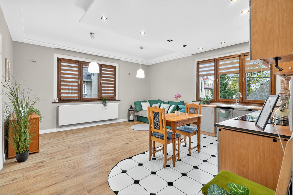 Lokal gotowy do zamieszkania, do ewentualnego odświeżenia i dopieszczenia według własnego uznania. Jest to piętro kamienicy dwurodzinnej. Remont kapitalny całego mieszkania miał miejsce kilka lat temu, gdzie oprócz standardowych prac zostały wymienione okna na drewniane-trzyszybowe, drzwi wejściowe, piec gazowy dwubiegowy wraz z nowymi grzejnikami, podłogi, oświetlenie i wiele innych. W cenie mieszkania pozostają zabudowy i wyposażenie widoczne na zdjęciach.