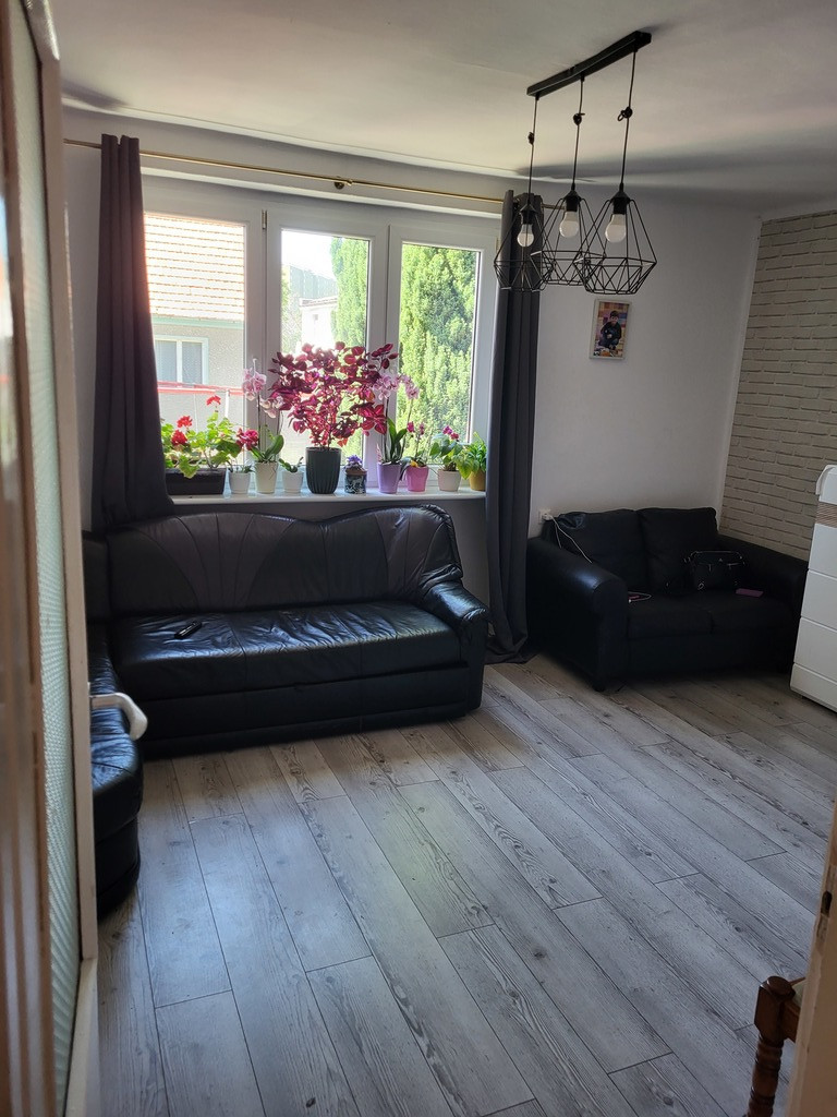 Parter o pow. 80m2 składa się z osobnej kuchni , trzech pokoi ( pokoje o pow. ok. 18,16,10 m2)i łazienki i piętro ma ten sam rozkład i powierzchnię.