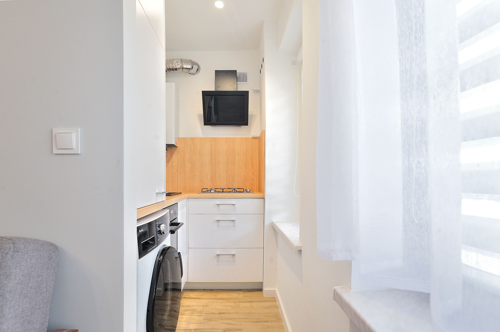 Do wynajęcia mieszkanie znajdujące się na pierwszym piętrze lll-piętrowego bloku. Jego całkowita powierzchnia wynosi 23,00 m2, jest w pełni umeblowane i wyposażone. W mieszkaniu znajduje się jeden pokój z którego jest przejście do kuchni oraz łazienka z wc. Łazienka wyposażona jest w kabinę prysznicową, umywalkę, lustro, wc, pralkę oraz grzejnik drabinkowy. Część kuchenna jest umeblowana i wyposażona w sprzęt AGD.