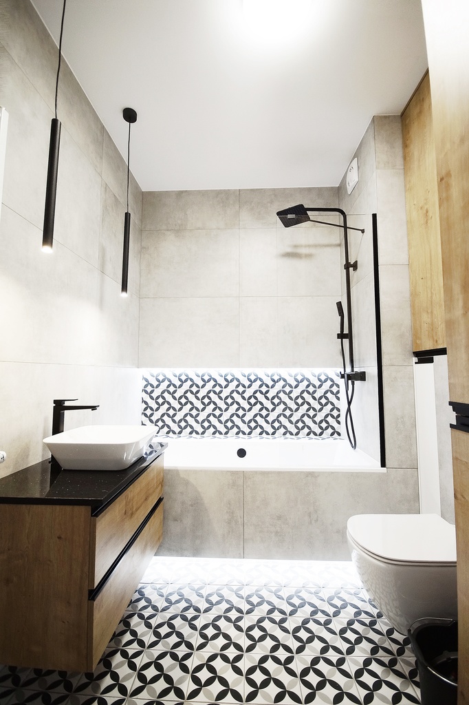 - Łazienka ok 4 m2 uposażona w wannę z możliwością prysznica, umywalkę, WC w glazurze i terakocie.