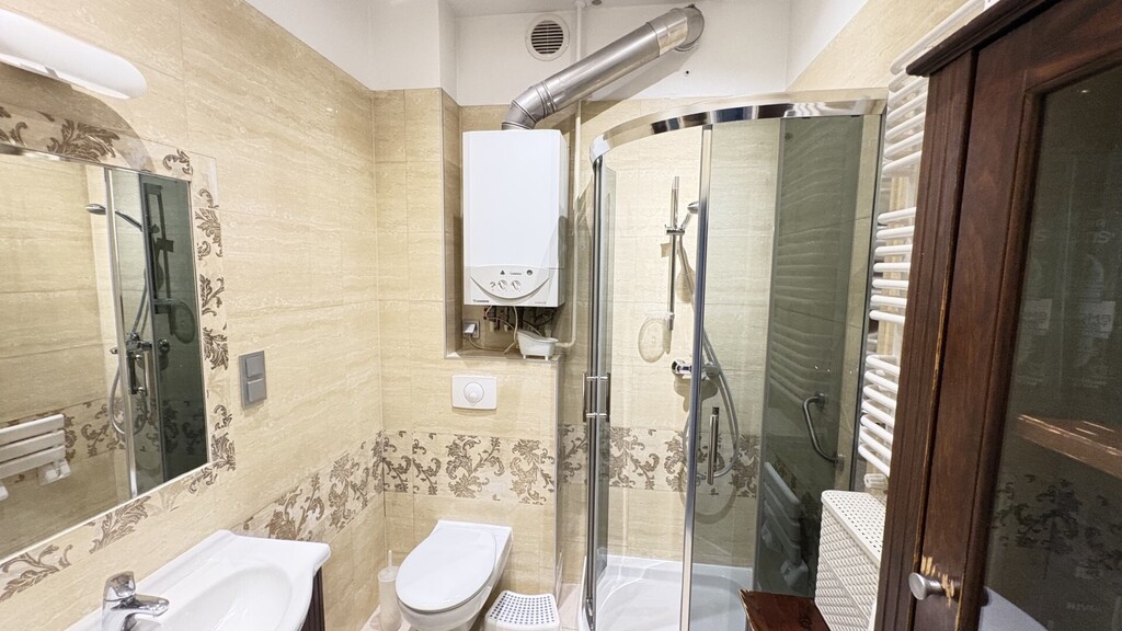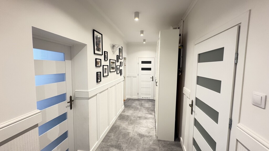 Lokal częściowo po remoncie – jedna z łazienek oraz korytarz zostały już odświeżone. W dwóch pomieszczeniach zamontowano nowoczesne, trzyszybowe okna plastikowe, co wpływa na komfort termiczny i akustyczny.