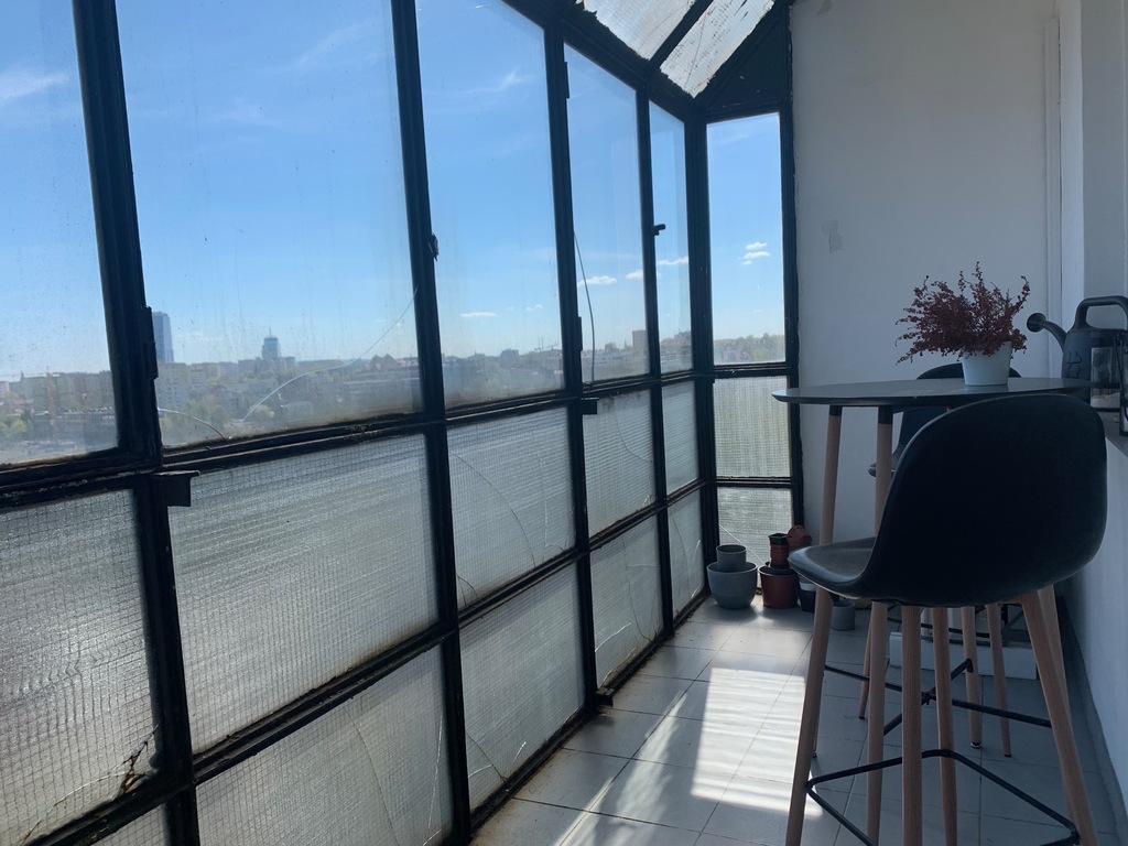 Balkon w całości zabudowany przez co stanowi dodatkową przestrzeń. Kolacja w takim klimacie zrobi na każdym wrażenie.