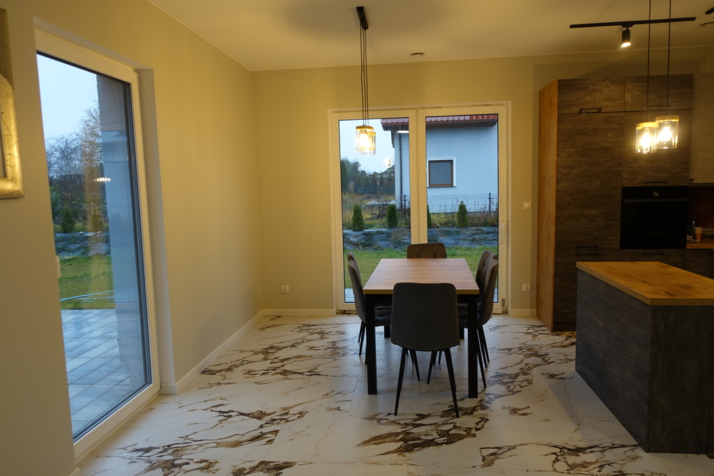 - kuchnia 8 m2 w kuchni elegancka zabudowa meblowa z urządzeniami AGD (m.in. lodówka z zamrażarką, piekarnik, płyta grzewcza, zmywarka,) spiżarnia 2,7 m2.
