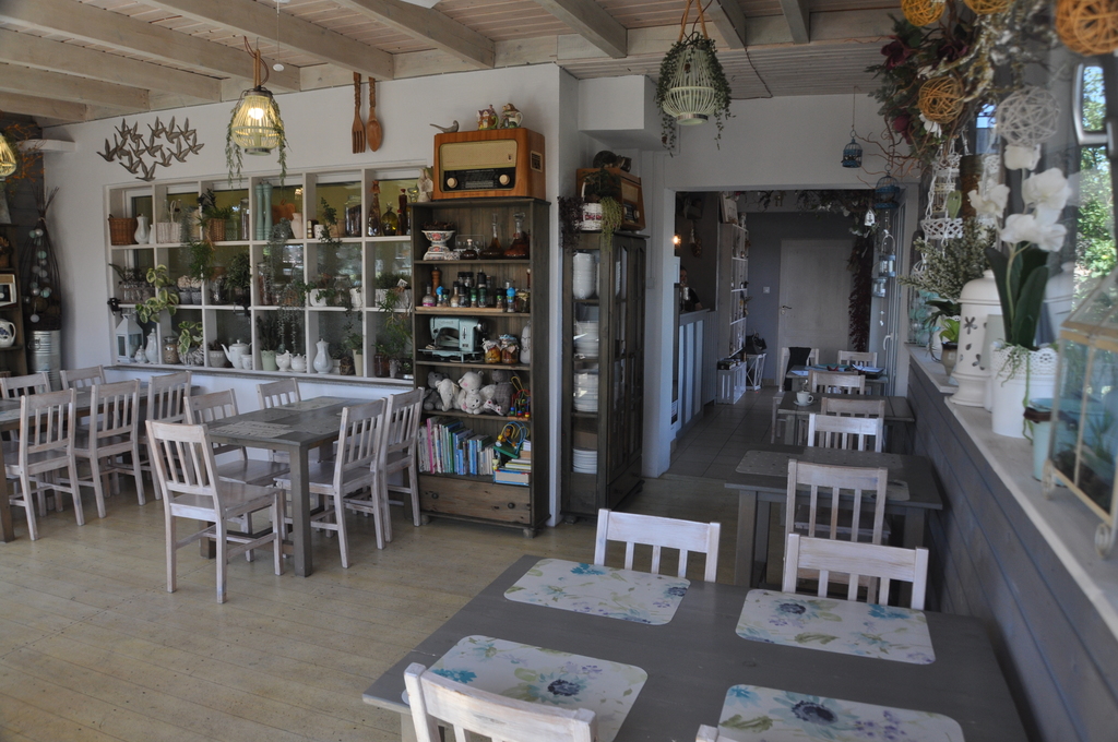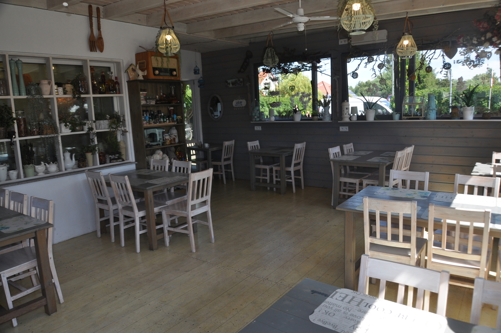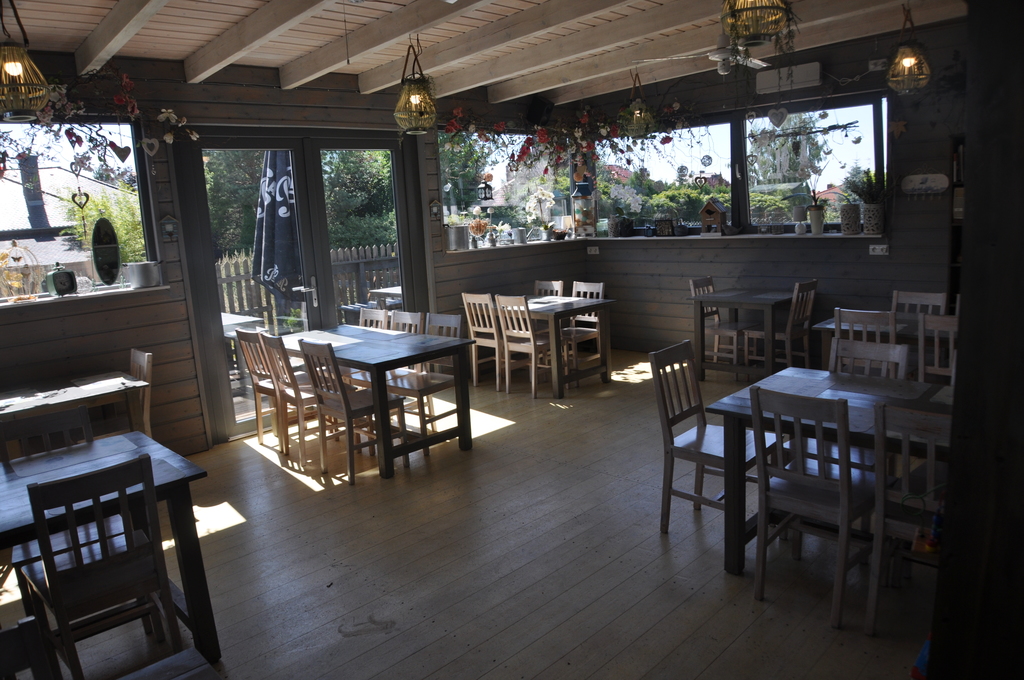 Sala konsumpcyjna, barek, kuchnia, duże zaplecze, toaleta dla gości, kotłownia, wc; wyjście na taras i do ogródka.
