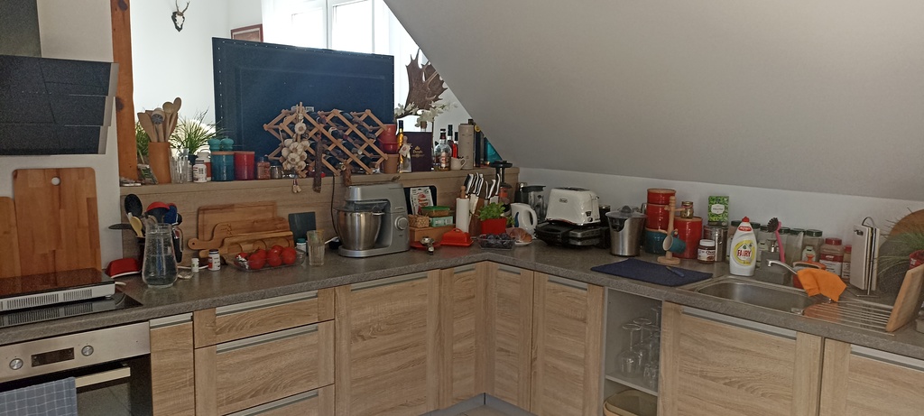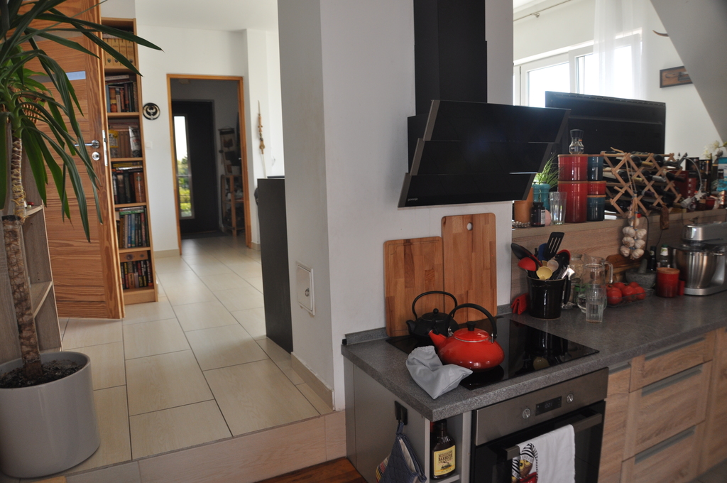 -kuchnia z jadalnią (15,6m2) z wyjściem na 20-to metrowy taras; w pełni umeblowana i wyposażona (kuchenka, zmywarka, lodówka)