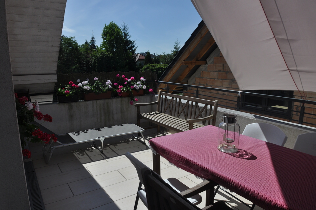3-pokojowe mieszkanie z dużym tarasem i balkonem. Niezależne wejście zewnętrznymi schodami.