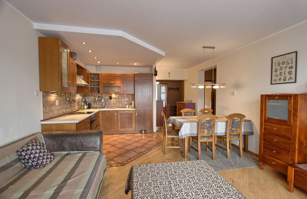Mieszkanie w pełni umeblowane- tak jak na zdjęciach, na podłogach parkiet drewniany i płytki gresowe.