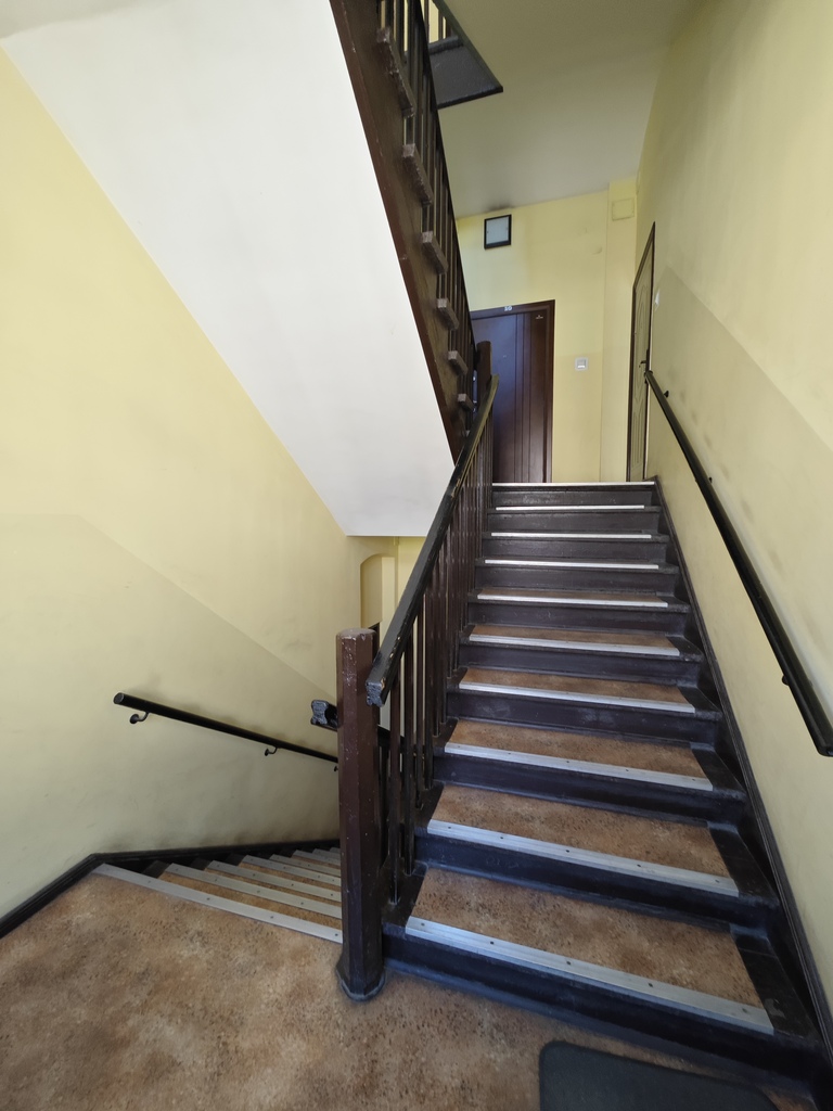 Na powierzchnię mieszkania składają się dwa pokoje (16m2 oraz 13m2), osobno kuchnia 8m2 z oknem oraz przedpokój (ponad 3m2). Dodatkowo do mieszkania przynależy wyłączne korzystanie z toalety znajdującej się na półpiętrze. W księdze wieczystej wpisana jest również piwnica przynależna do lokalu o powierzchni 8,87m2.