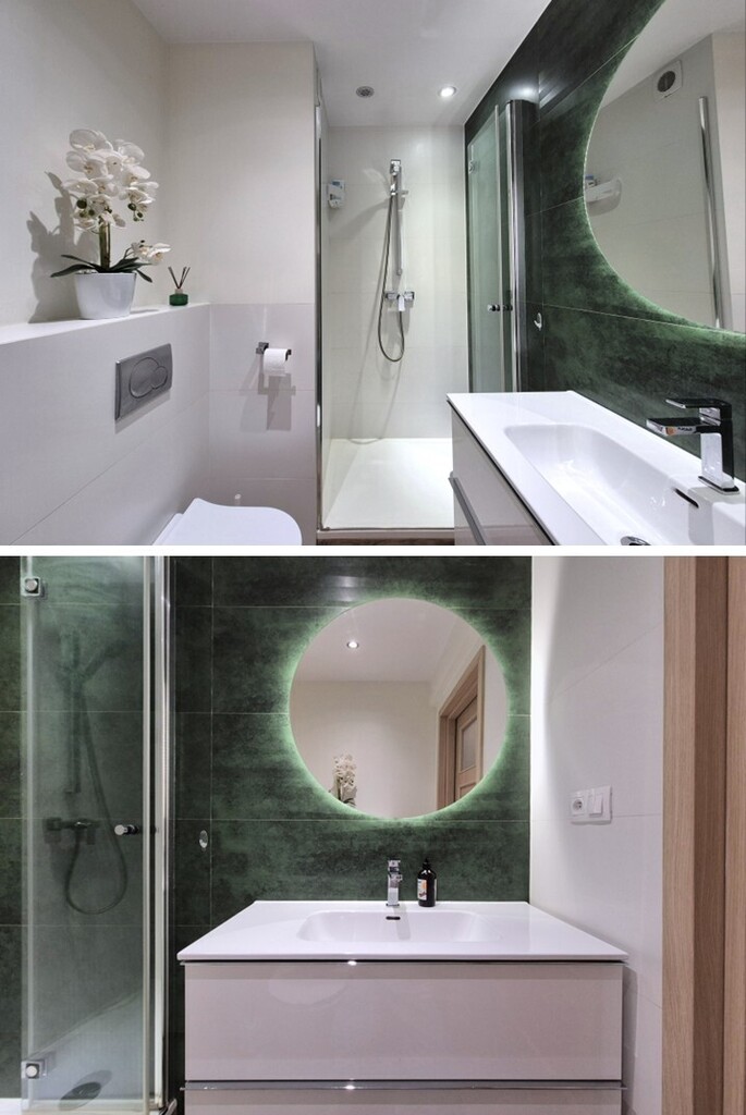* Duża wanna, umywalka, WC podwieszane, pralka.