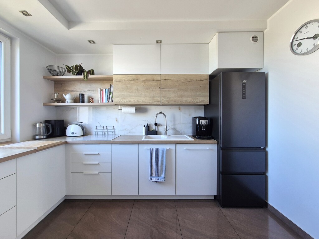 * duża, jasna kuchnia z oknem – komfortowa przestrzeń do wspólnego gotowania i spożywania posiłków