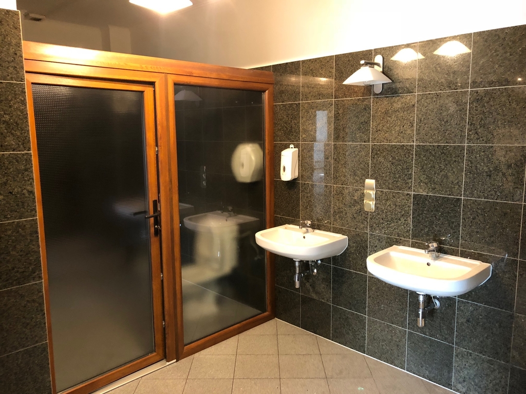 Posadzki w całym lokalu granitowe, okna PCV, drzwi drewniane, ściany w gładzi, malowane. W każdym pomieszczeniu instalacje internetowe i telefoniczne. Przed budynkiem miejsca parkingowe.