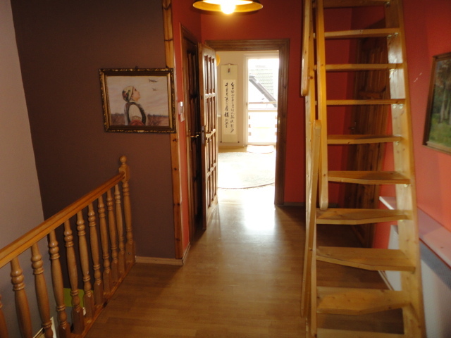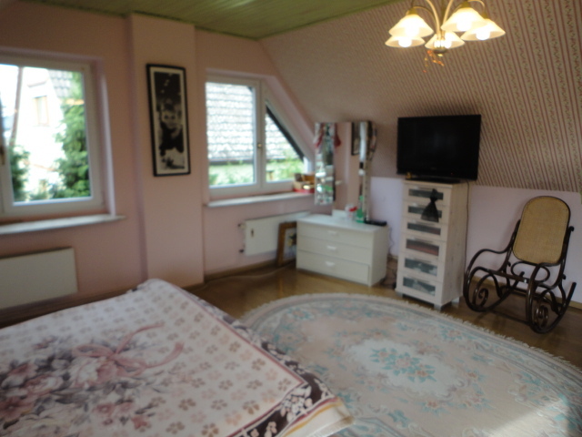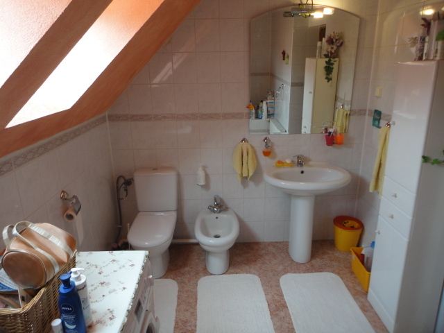 Piętro na którym znajdują się cztery pokoje- sypialnie 12,11,21,14 mkw, łazienka 7 mkw., pomieszczenie socjalne- schowek, hol z którego prowadza schody na poddasze. Na podłogach są panele. Ściany gładzone malowane. Piwnica w którym znajdują się cztery pomieszczenia i garaż dwu stanowiskowy. W 2009 r. był przeprowadzony w domu remont ale tak naprawdę nie był konieczny ponieważ dom był w bardzo dobrym stanie.