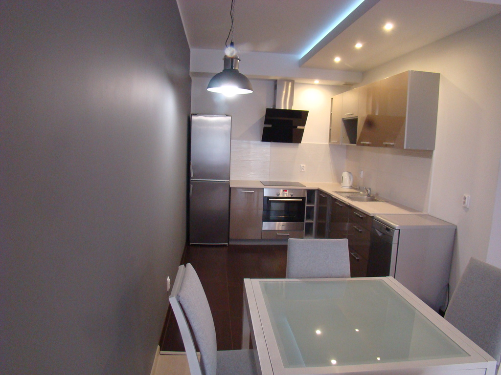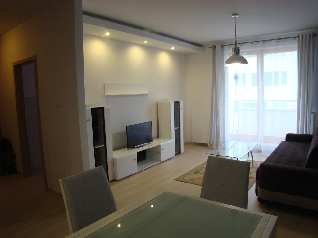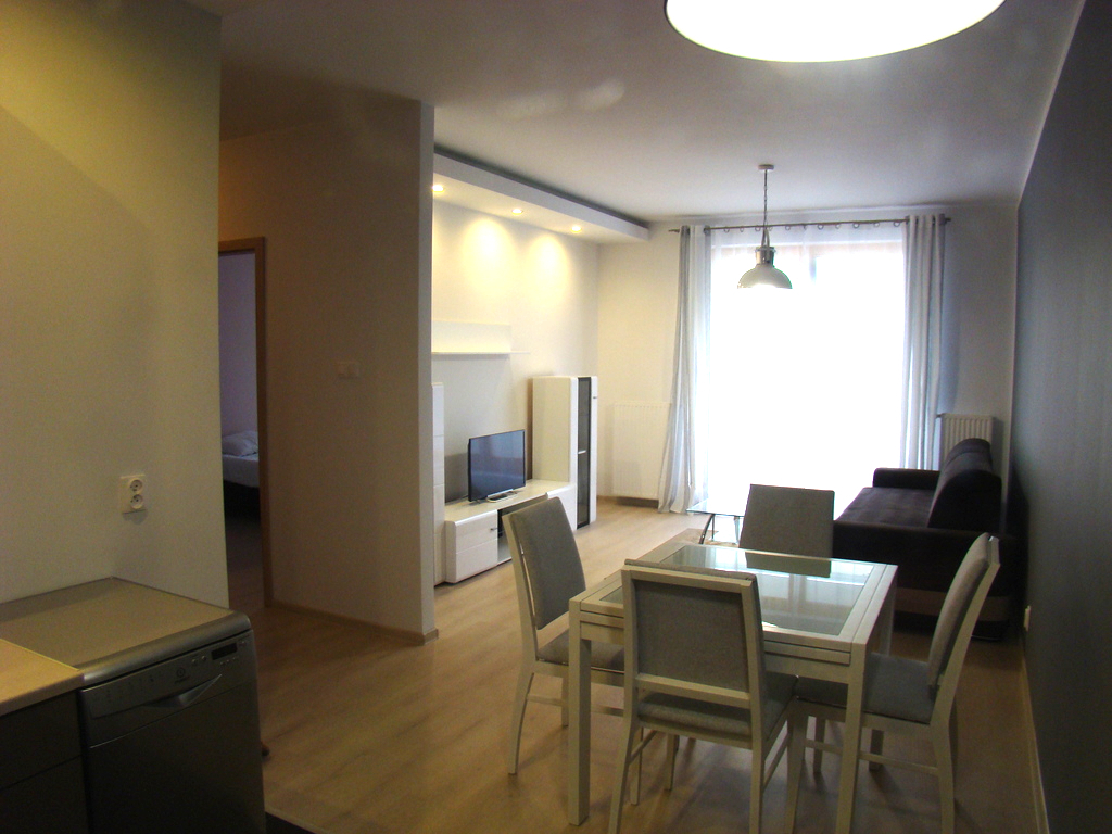 Centrum. Nowe Osiedle Pionierów. Dwupokojowy, elegancki apartament o powierzchni 48,06 m2 umeblowany i wyposażony z miejscem postojowym na terenie osiedla. II piętro nowoczesnego budynku z windą. Budynek z cegły z roku 2013. Pokój dzienny połączony z kuchnią ok 28 m2, sypialnia ok. 12 m2, łazienka 5 m2 i balkon. Mieszkanie wykończone w bardzo wysokim standardzie. Pokój umeblowany (kanapa, komoda, szafa, stolik szklany, w sypialni m.in. łóżko dwuosobowe). W łazience nowoczesna glazura i terakota, kabina prysznicowa z deszczownicą, compact, biała szafka, pralka. W kuchni nowoczesna zabudowa meblowa sprzęt AGD (lodówka z zamrażarką, płyta elektryczna, ceramiczna z piekarnikiem, nowoczesny pochłaniacz). W pokojach panele, w kuchni terakota. Czynsz miesięczny wynosi 2000 zł +210 zł do zarządcy. Dodatkowo opłaty za ogrzewanie i podgrzanie wody z SEC-u (miejskie), zimna woda, prąd, internet i RTV. Polecam z uwagi na świetne położenie blisko centrum.