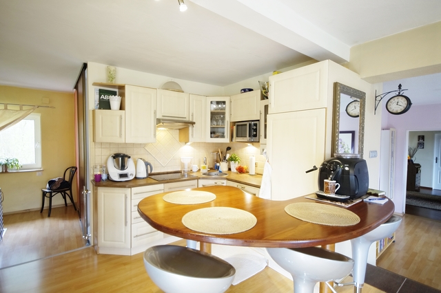 Budynek posiada ogrzewanie gazowe z pieca z zasobnikiem wodnym firmy De Dietrich. W ramach ceny budynku właściciel pozostawia dla nowego nabywcy zabudowaną kuchnię wraz ze sprzętem AGD. Cena wyjściowa wynosi 1 499 000,00 zł.
