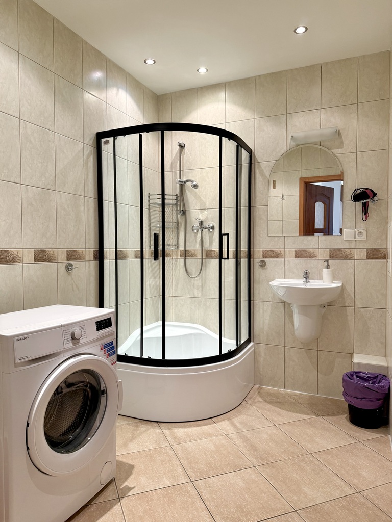 - osobna, w pełni wyposażona kuchnia (zabudowa kuchenna, piekarnik, płyta, okap, lodówka, zmywarka, czajnik elektryczny)