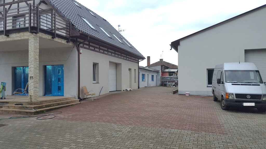 Nieruchomość zlokalizowana w Gryficach (miasto powiatowe w odległości 100 km od Szczecina, 100 km od Koszalina, 25 km do morza). Miejsce idealne pod hurtownię, magazyn z biurem, punkt przeładunkowy, dom mieszkalny z możliwością prowadzenia działalności, lekką produkcję. Składa się z wolnostojącego domu o całkowitej powierzchni ok. 300m2 z częścią mieszkalna i magazynami, oraz hali o takiej samej powierzchni. Działka o powierzchni blisko 2300m2 wyłożona polbrukiem, ogrodzona. Budynek mieszkalny składa się z trzech kondygnacji-na parterze duży garaż mogący służyć jako magazyn, część biurowa i socjalna. Piętro- bardzo duży pokój konferencyjny z możliwością podziału, kuchnia, łazienka. Na drugim piętrze znajdują się dwie sypialnie. Ogrzewanie gazowe, dach kryty dachówką ceramiczną, woda i kanaliza miejska.