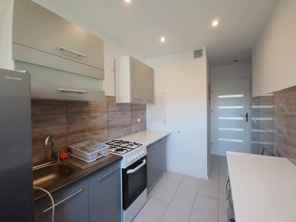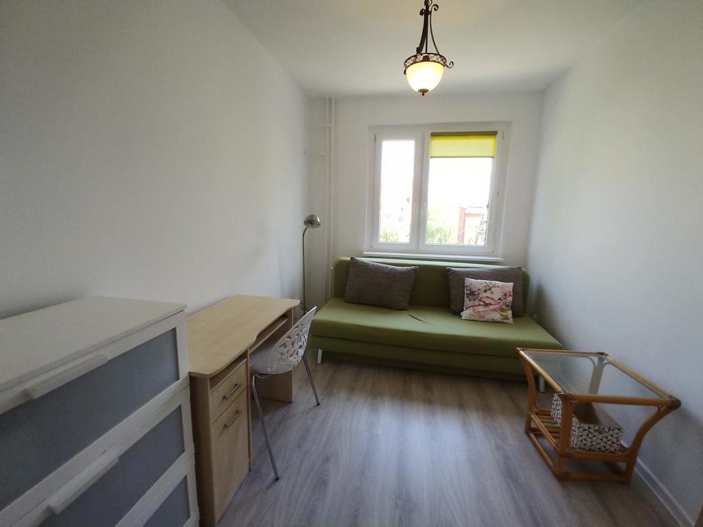Pokoje rozkładowe, pokój dzienny 16m2 z wyjściem na balkon, kuchnia 8m2 z oknem, sypialnia 12m2, łazienka 4m2 i osobno wc. Łazienka z oknem w glazurze i terakocie z kabiną prysznicową, umywalką i miejscem na pralkę. Kuchnia widna z oknem. Na podłodze w mieszkaniu panele. Okna pcv.