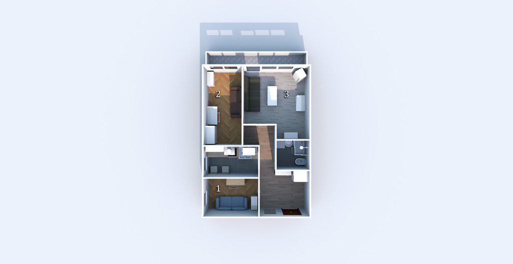 Mieszkanie składa się z dużego pokoju z balkonem oraz dwóch sypialni, kuchni oraz łazienki z WC. W pełni umeblowane oraz wyposażone (pralka, kuchenka, telewizor, lodówka).