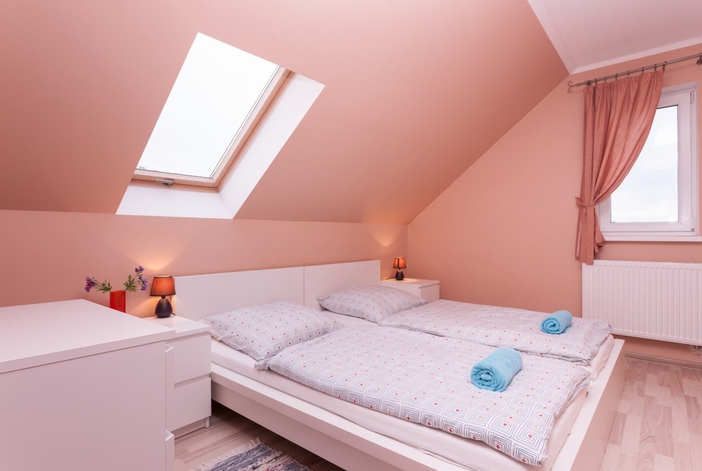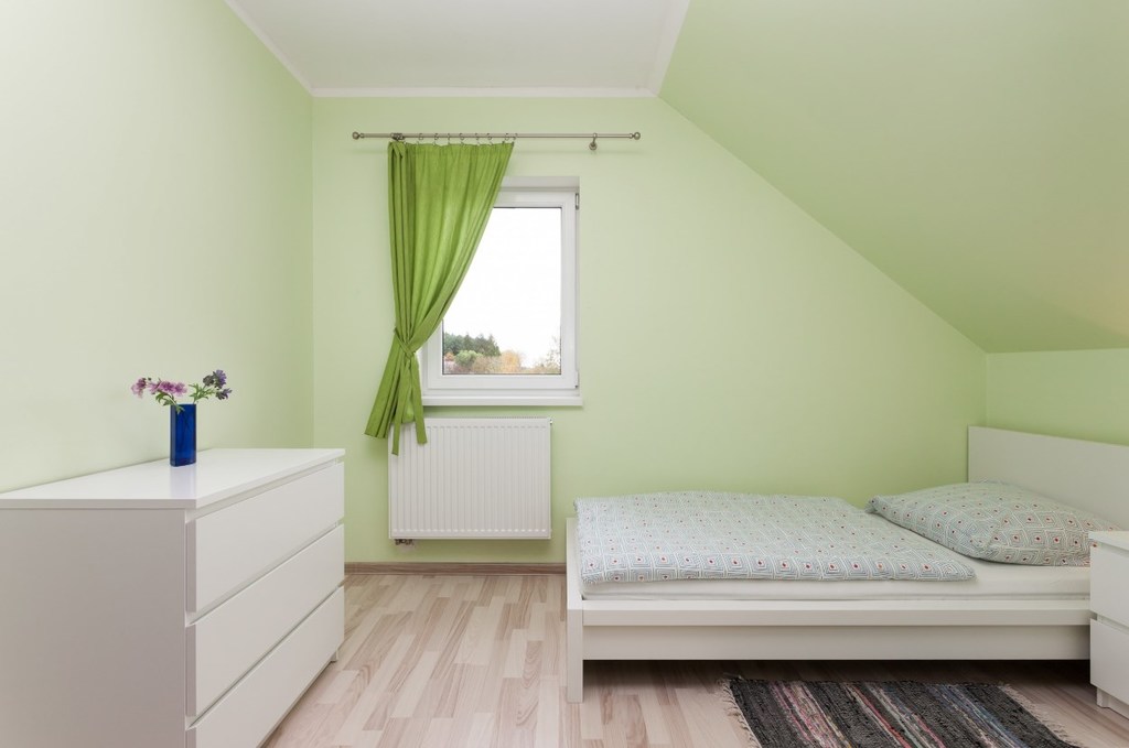 Dwuosobowe łóżko, jednoosobowe łóżko, pościel, szafki, komoda
