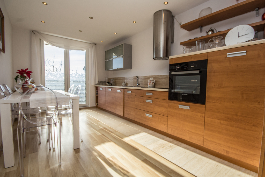 -salon z wyjściem na taras-z tarasu rozciąga się przepiękny widok na tereny zielone i ogrody. W salonie najwyższej klasy kominek firmy Spartherm.