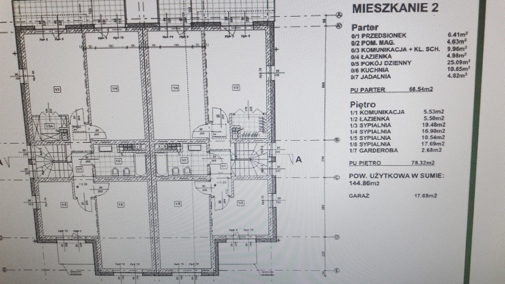 Zestawienie powierzchni każdej połowy bliźniaka:
