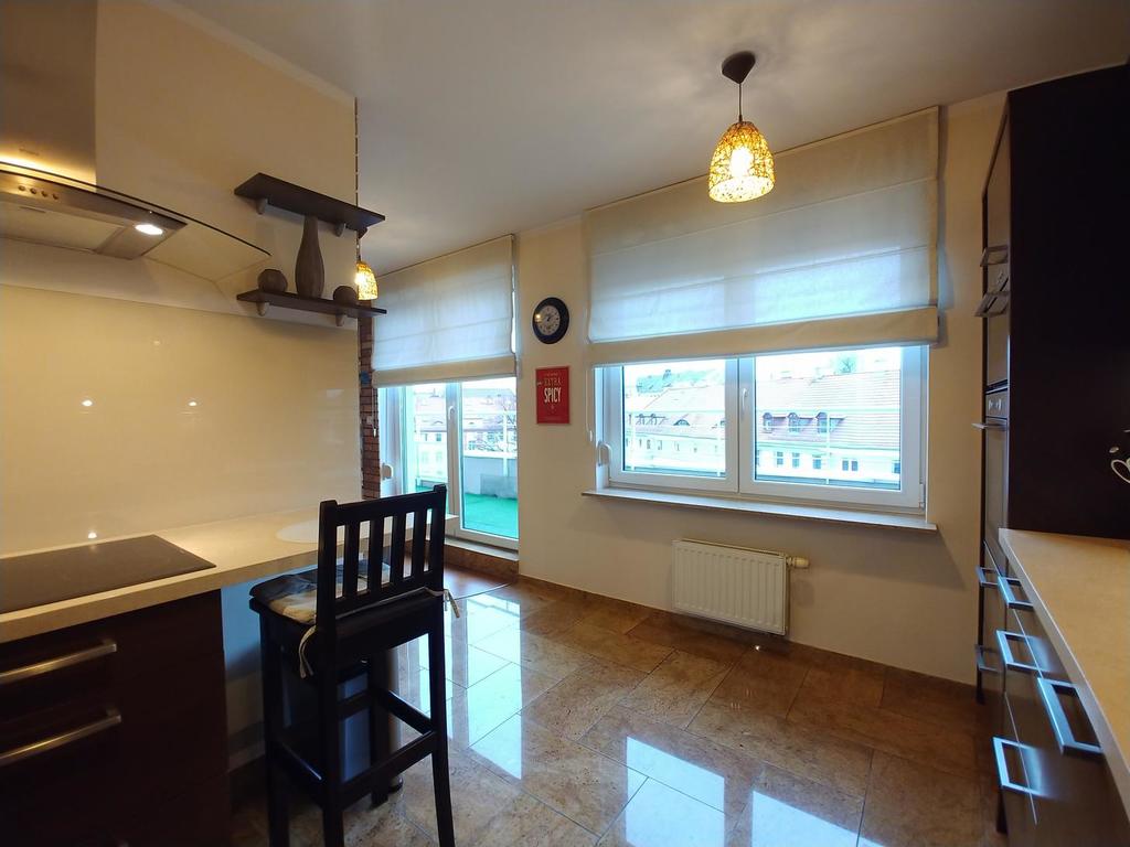 Komfortowy w pełni wyposażony 2-poziomowy apartament o wysokim standardzie z dużym tarasem 20m2.Mieszkanie znajduje się na V piętrze, w monitorowanej plombie z 2009 roku w samym centrum Szczecina. Do dyspozycji cicha winda i wózkownia. Niedaleko znajduje się park i ogródek jordanowski z placem zabaw dla dzieci.