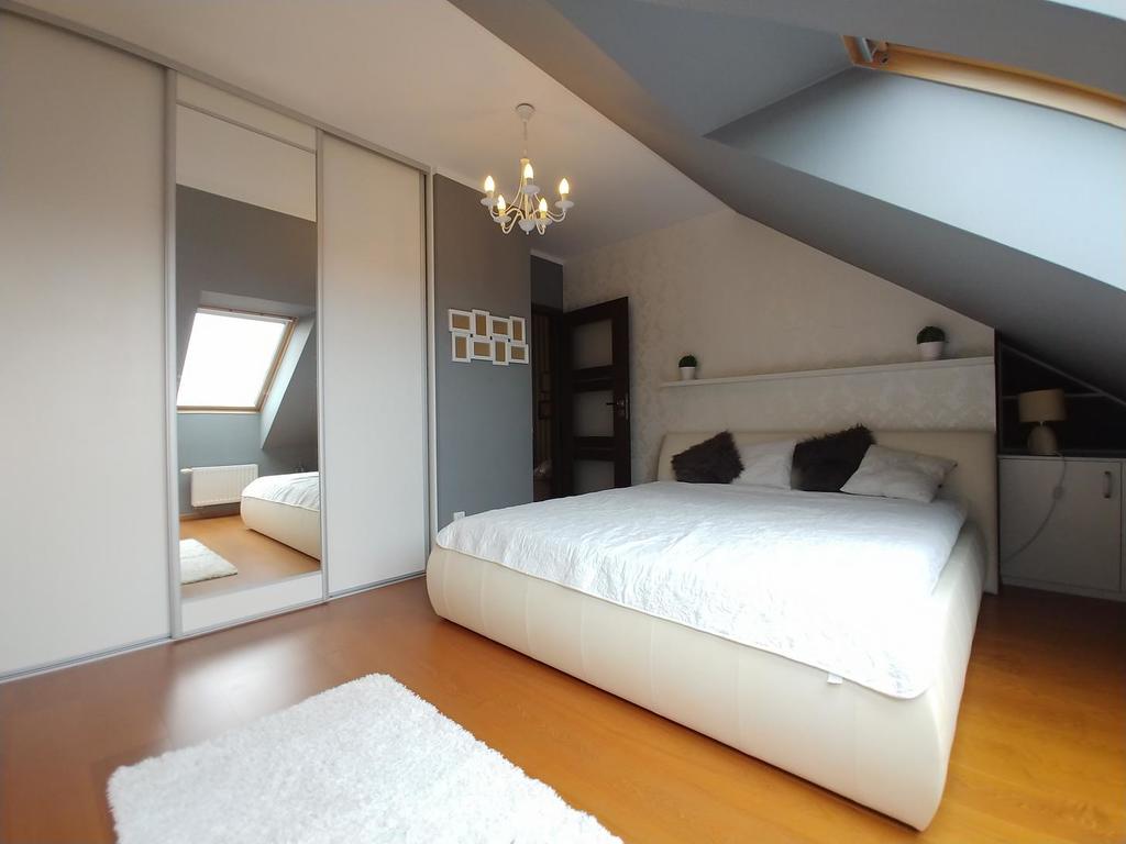 Na II poziomie znajduje się łazienka wykończona marmurowymi płytkami i dwie kompletne sypialnie.