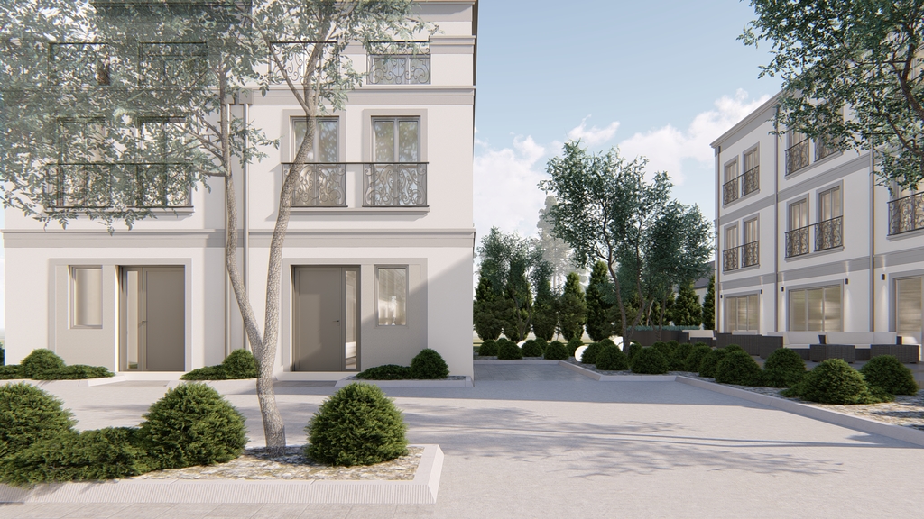Domy wybudowane w zabudowie szeregowej każdy o powierzchni 100 m2. Całość inwestycji ogrodzona, monitorowana oraz chroniona przez całodobową ochronę.