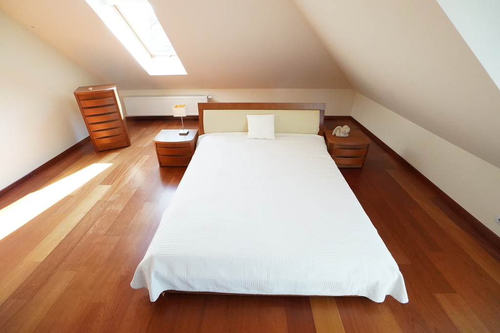 Zapraszam na prezentację domu wolnostojącego do wynajęcia. Dom zlokalizowany w urokliwym miejscu Szczecina na skraju Puszczy Wkrzańskiej. Na parterze znajduje się przestronny pokój dzienny z widokiem na ogród, przez otwartą przestrzeń wchodzimy do części kuchennej z wyspą, z kuchni wchodzimy do dużego salonu kominkowego z wyjściem na taras. W części parterowej znajduje się jeszcze pomieszczenie gospodarcze z piecem gazowym z zasobnikiem oraz garaż. Na poddaszu znajduje się duży hol, dwie sypialnie oraz przestronny salon kąpielowy. Dom w stanie idealnym, stylowe drewniane podłogi nadają odpowiedniego ciepłego, domowego nastroju. Ogród zadbany z dużym tarasem w literę L, licznymi iglakami i ciekawymi nasadzeniami. ZAPRASZAM NA PREZENTACJĘ.