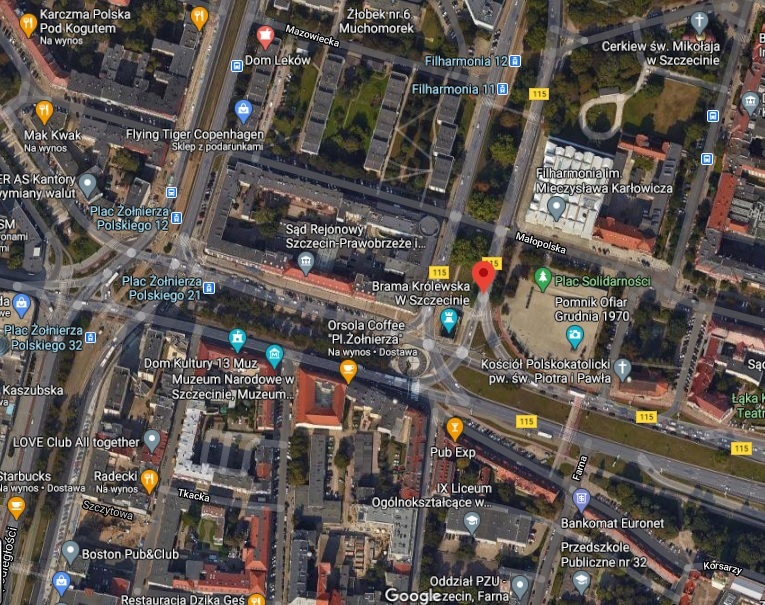 Nieruchomość położona przy placu Hołdu Pruskiego na parterze kamienicy w bardzo ruchliwym ciągu komunikacyjnym pieszych.