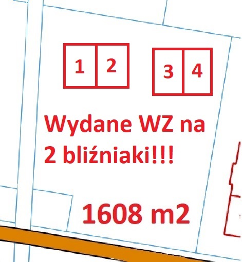 Wydane warunki zabudowy oraz wszystkich przyłączy (gaz, prąd, kanalizacja, woda) na wybudowanie aż 2 bliźniaków 2 lokalowych!!!