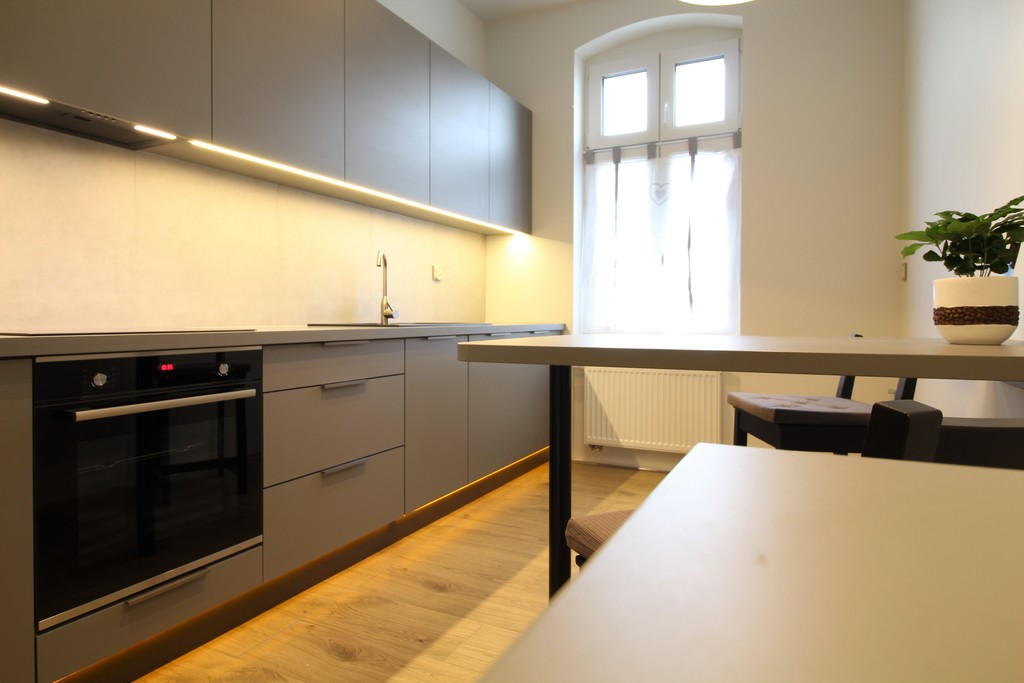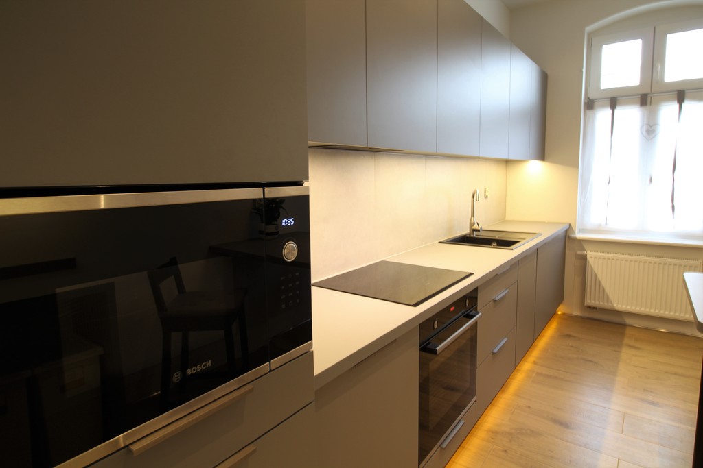 - kuchnia z meblami w zabudowie - piekarnik, zmywarka, płyta indukcyjna firmy BOSCH,