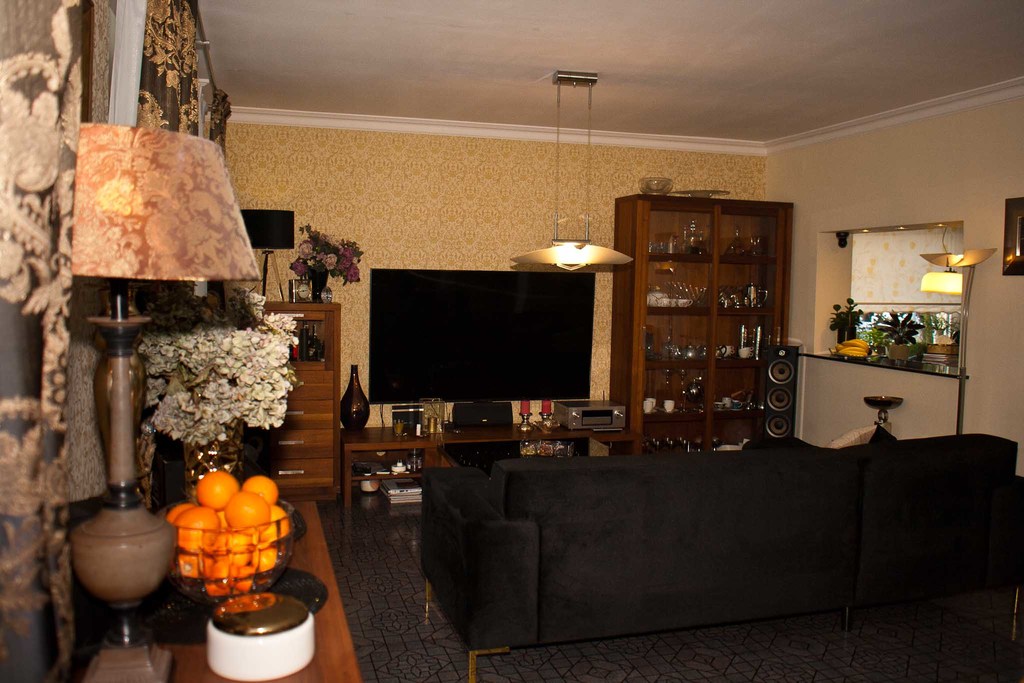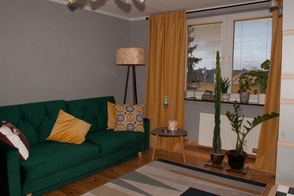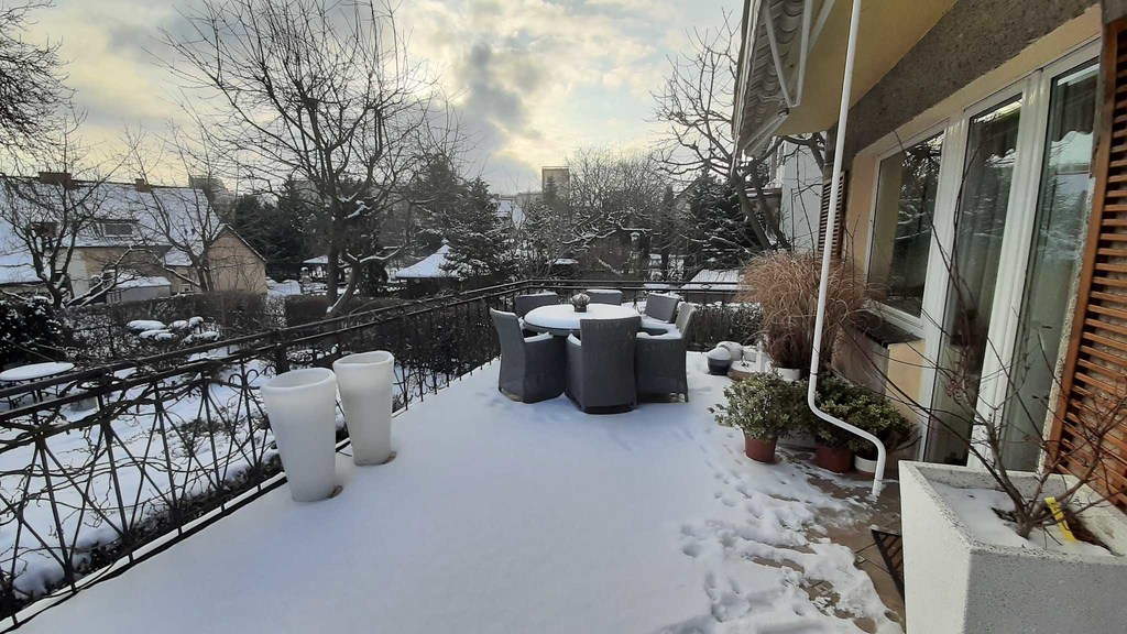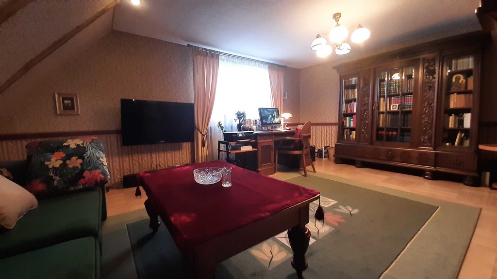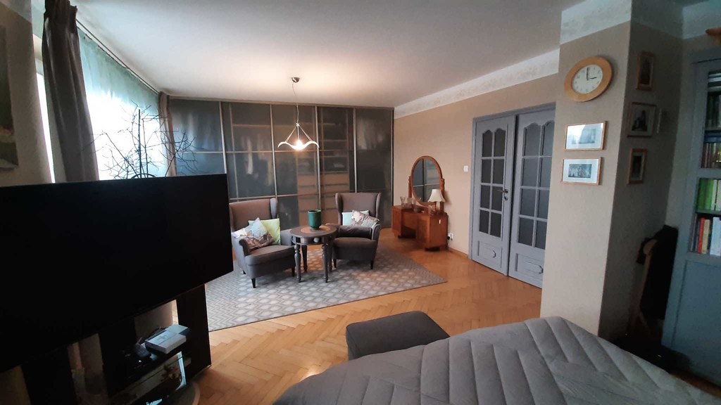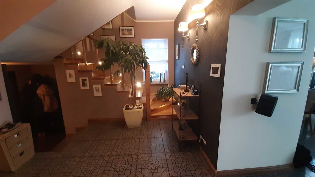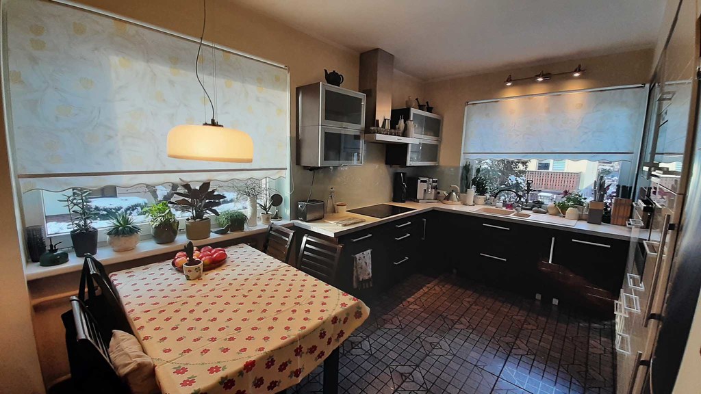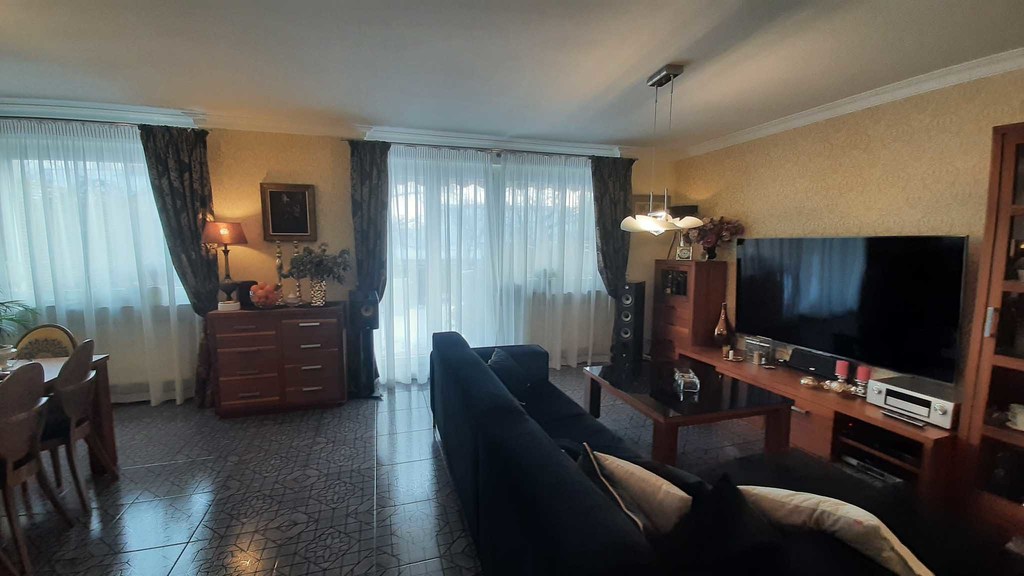 * parter- wiatrołap, przedpokój, osobna toaleta, duża widna kuchnia, duży salon z jadalnią i wyjściem na 32 metrowy taras (od strony południowej). Kuchnia umeblowana i wyposażona, otwarta na salon. Salon i jadalnia (pierwotnie były to dwa niezależne pokoje) obecnie połączone w celu uzyskania otwartej przestrzeni.
