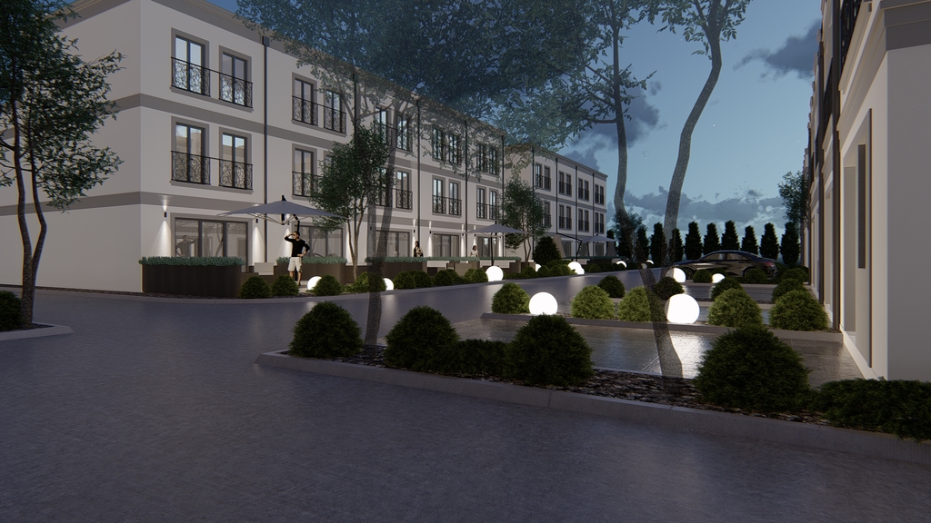 Apartamenty wybudowane w zabudowie szeregowej każdy o powierzchni 100 m2. Całość inwestycji ogrodzona, monitorowana oraz chroniona przez całodobową ochronę.