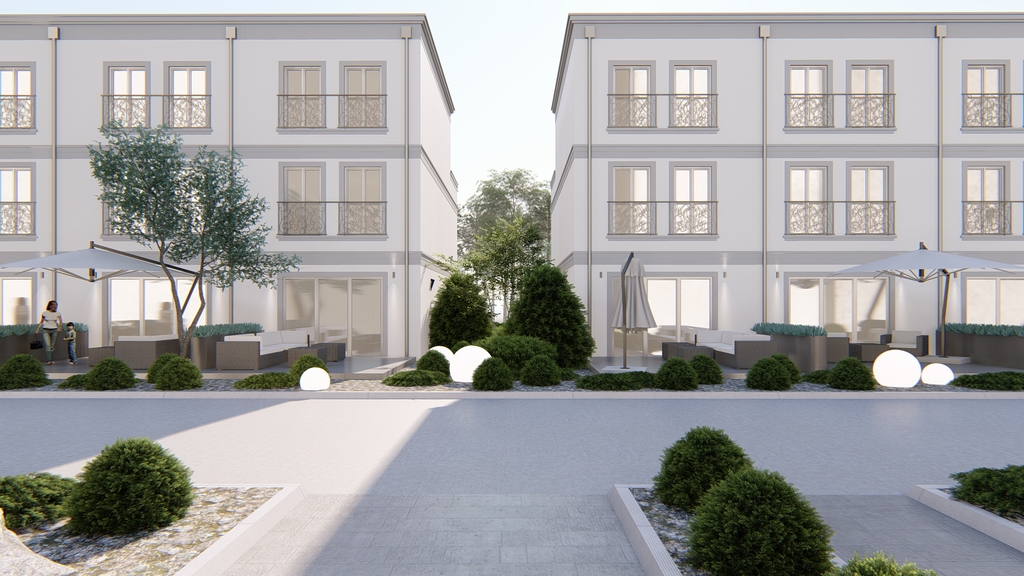 Apartamenty wybudowane w zabudowie szeregowej każdy o powierzchni 100 m2.
