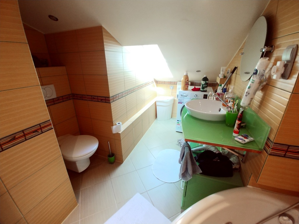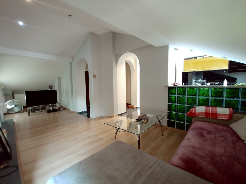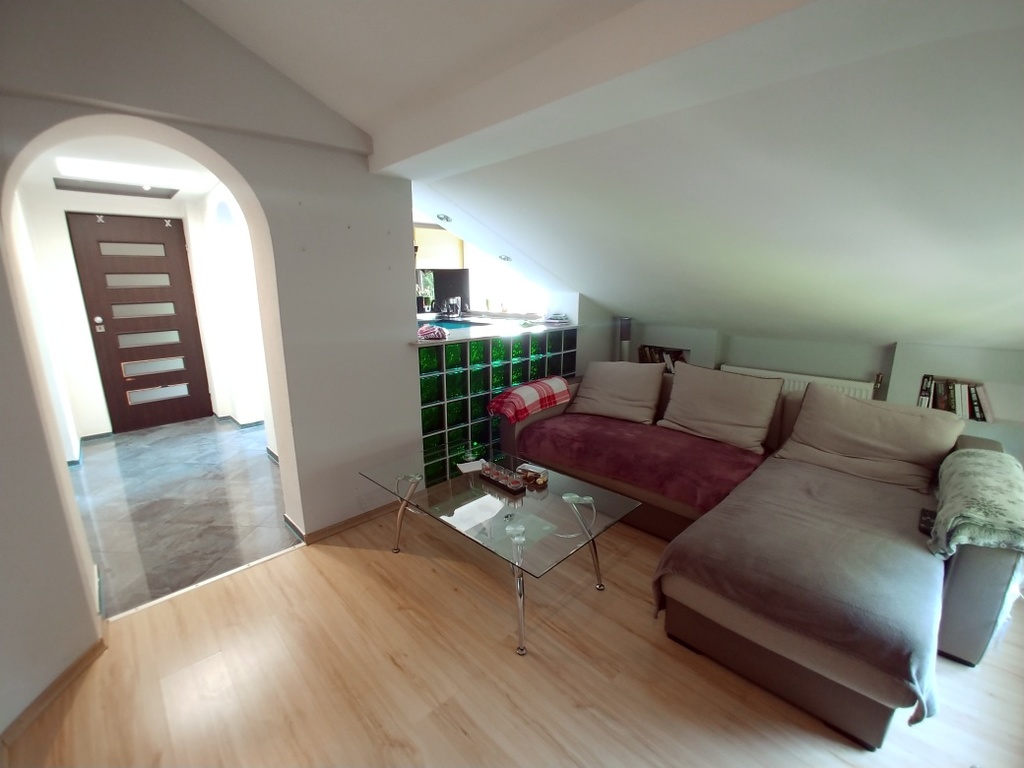 II piętro/poddasze użytkowe: 2 duże pokoje z aneksem kuchennym w układzie otwartym, łazienka z wanną i wc.