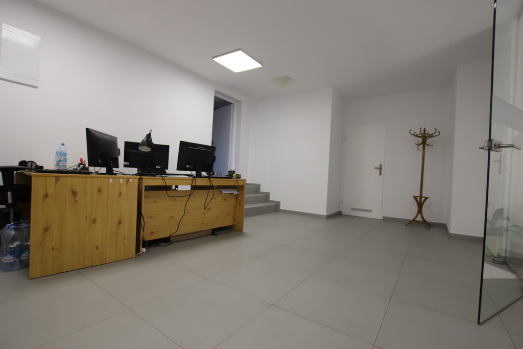 Budynek o łącznej powierzchni 814,2 m2, składa się z trzech poziomów. Na poziomie "0" - 441,8 m2, znajdują się pomieszczenia magazynowo-usługowe wraz z zapleczem, kotłownia oraz hol i klatka schodowa prowadzące do pomieszczeń biurowych na wyższych kondygnacjach. Usytuowany jest na działce o powierzchni 1477 m2. Wybudowany w technologii traycyjnej a oddany do użytkowania w 1999 r. Bezpośrednie otoczenie stanowią obiekty o podobnym charakterze co przedmiotowa nieruchomość (funkcja usługowa). Jest także możliwość wynajęcia dodatkowej powierzchni o charakterze warsztatowo - magazynowym o metrażu 413,02 m2 znajdującej się na poziomie "0".
