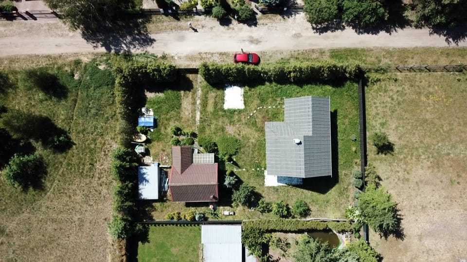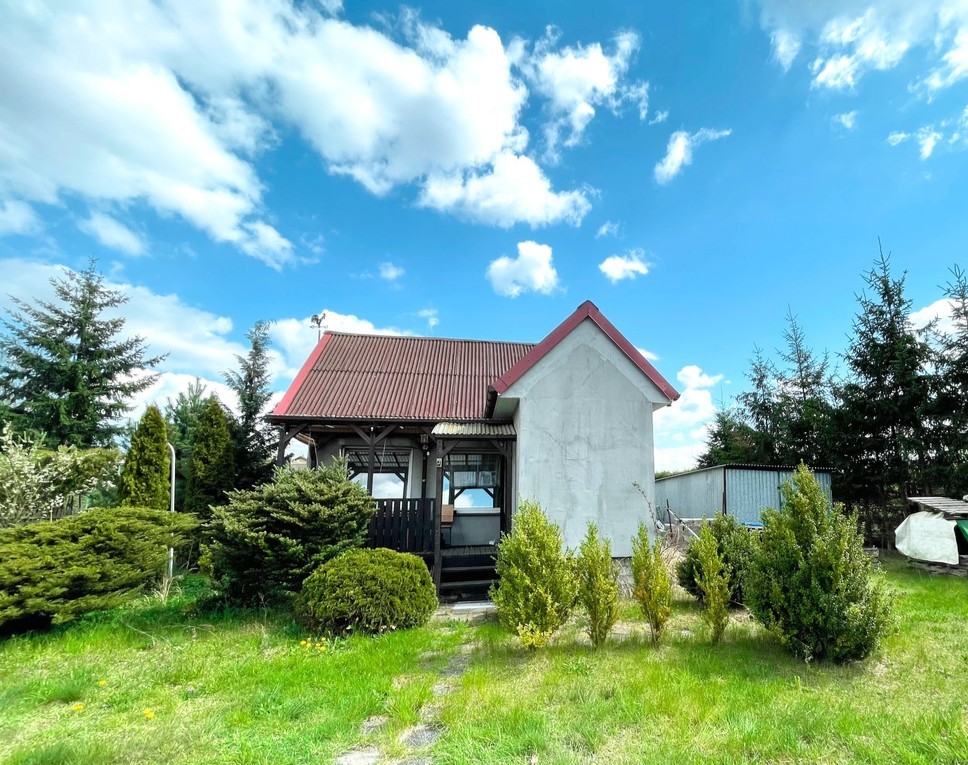Działka pięknie zakrzewiona, na której mieści się również murowany domek letniskowy na zgłoszenie.